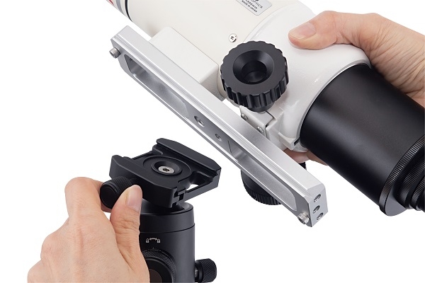 取り付けるプレートをサイドから挟むクイックリリース構造を採用しているため、簡単に小型鏡筒やカメラ機材の取り付け、取り外しができます。