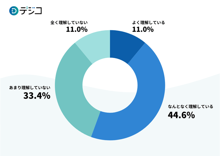 個人情報保護法について理解しているかたずねたところ、55.6%が「よく理解している」「なんとなく理解している」と回答しました。一方で、約半数は十分に理解できていないことがわかりました。