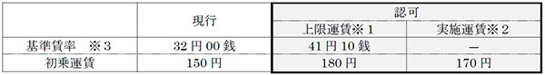 ※2 実施運賃:認可が得られた上限運賃の範囲内で実施する、実際にお客様から収受する運賃額。