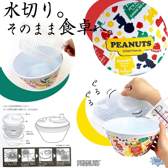 野菜の水切りも楽々♪そのままボウルとして食卓に直行できるスヌーピーのベジタブルスピナー