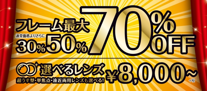 対象商品:フレーム30%・50%・70%OFFコーナーを設置いたします。