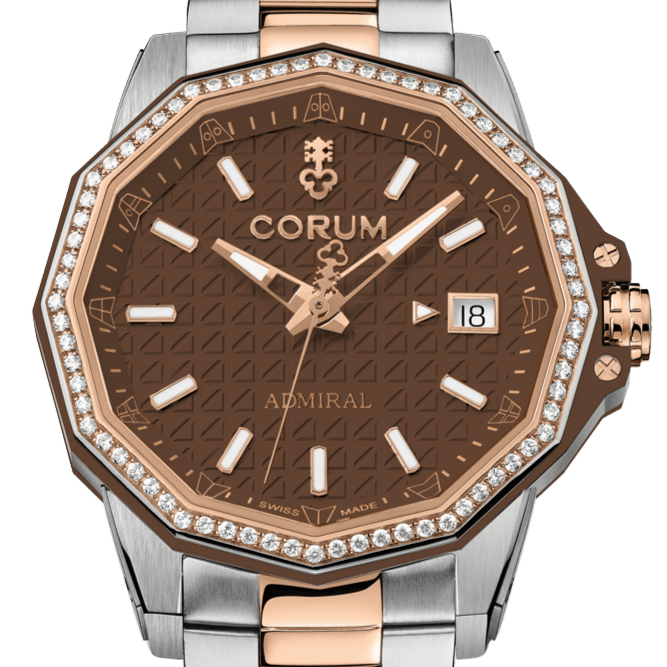 スイス高級時計ブランド CORUM(コルム)が、『アドミラル 38 オートマティック』を、5月9日(木)に全国の正規販売店で発売します。グレード5チタン・5N18Kローズゴールドのコンビネーションと、円熟した色気を感じさせるブラウンのエンボスダイアルが特徴です。