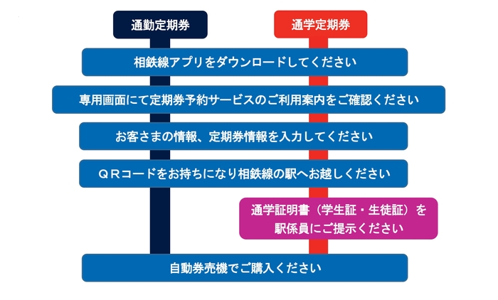 これは、相鉄線アプリ上で新規定期券の購入予約を行い、最寄り駅の自動券売機で簡単にご購入いただけるものです。同サービスの提供により、定期券発売所(横浜・二俣川・三ツ境・大和・海老名の各駅)に出向くことなく、スムーズに購入できるため、利便性の向上が図れるものです。