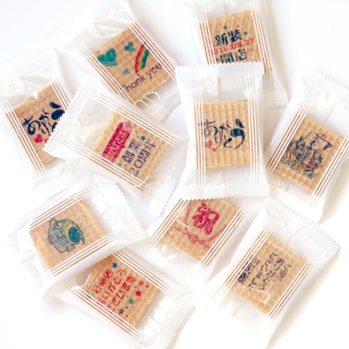 珍しいウエハースのオリジナルプリントお菓子。カラフルな絵柄もOK!