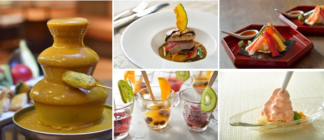 夏の暑さを吹き飛ばすスタミナ料理をはじめ、涼感メニュー、夏の野菜や食材を使用した創作料理など、和洋中の料理とデザート、ランチ約40種類・ディナー約50種類をビュッフェでお楽しみください。