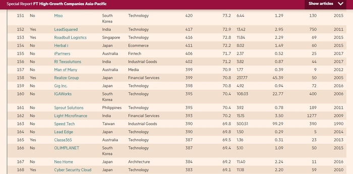 「アジア太平洋地域の高成長企業ランキング2022」で リアライズコーポレーションが第158位にランクイン。 3年連続3度目 | NEWSCAST