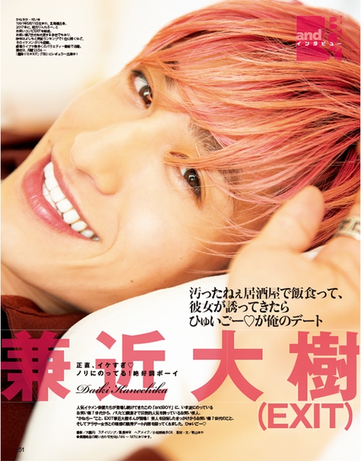 正直、イケすぎ♪ノリにのってる!絶好調ボーイ かねちーこと、EXITの兼近大樹が初登場! 『andGIRL 9月号』本日発売!