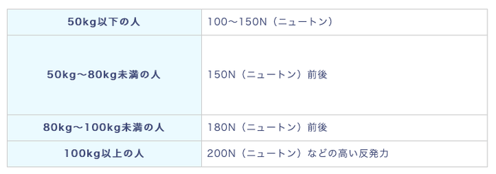 体重別に合うニュートン数があり、その目安は次のとおりです。