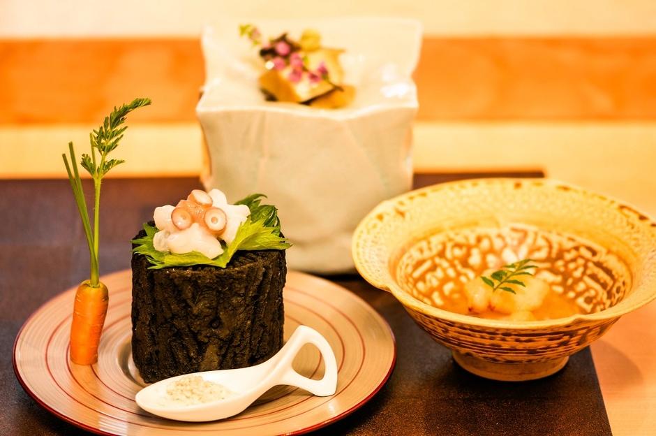 ディナーでは、イカナゴや鮎魚女(あいなめ)など、瀬戸内ならではの珍魚たちも登場。細部にわたり‘花’を意識した仕立てにより、その彩りもお愉しみいただけます。