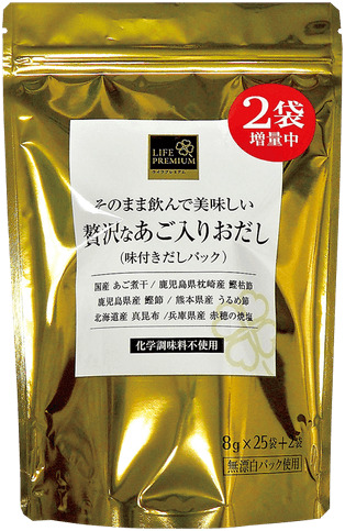 どんな料理でも大活躍! ライフプレミアム「そのまま飲んで美味しい 贅沢なあご入りおだし」増量パックを数量限定で販売中!