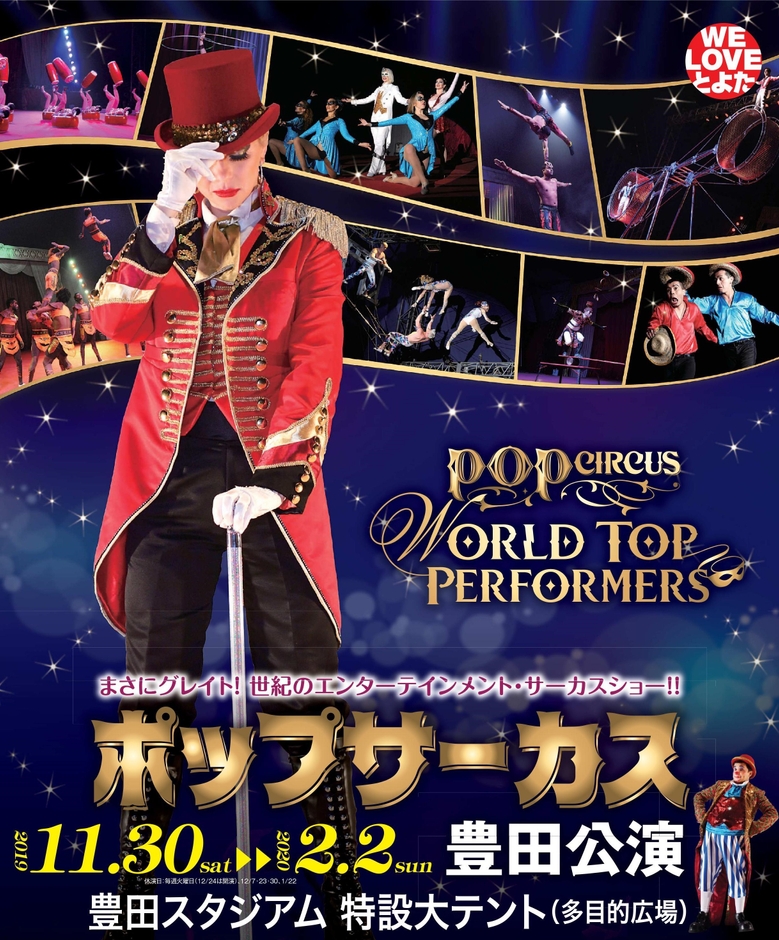 2019年11月30日(土)から2020年2月2日(日)までの間、豊田スタジアム多目的広場の特設大テントで一瞬の輝きのために極限までに鍛え上げられた肉体と技を間近でご覧いただける「ポップサーカス」豊田公演が開催されます。12月14日(土)、15日(日)には、スカイホール豊田で日本トップレベルの選手と世界の強豪の華麗な演技を間近で見ることができる貴重な機会である「豊田国際体操」が開催されます。また、12月21日(土)に豊田スタジアムで西日本エリアでは初開催となる世界最高峰の障害物レース「スパルタンレース」が開催されます。