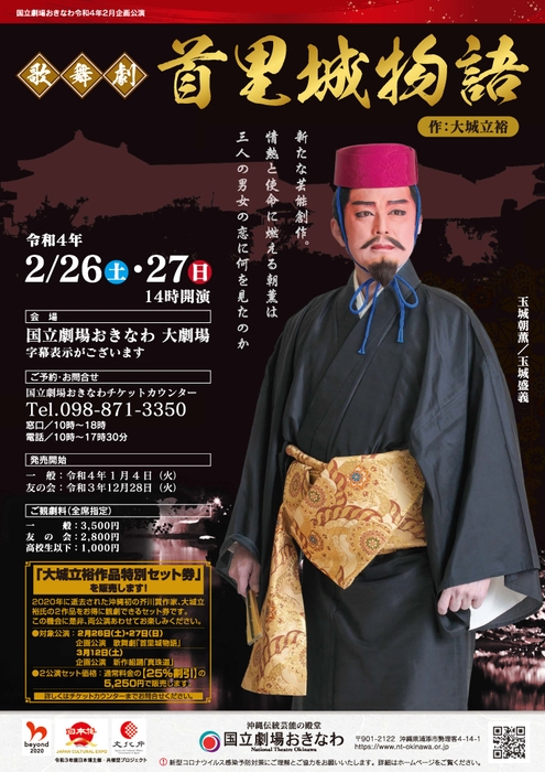 沖縄初の芥川賞作家、大城立裕氏の歌舞劇を復帰50周年の幕開けの企画として上演『歌舞劇「首里城物語」』2/26開幕!カンフェティにてチケット発売中