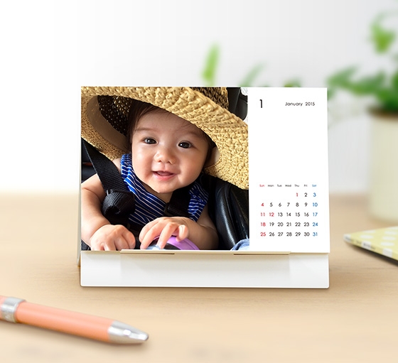 写真が入る表面のカレンダーは、1月はじまり(2015年1月〜12月)と4月はじまり(2015年4月〜2016年3月)の2種類から選べます。