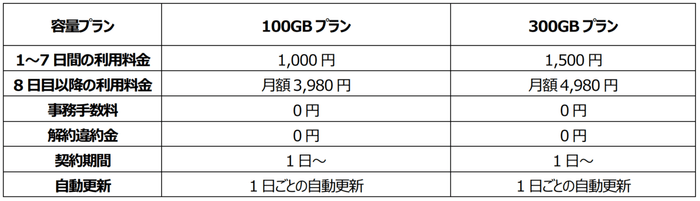 「i WiFi」はたっぷり使える100GB・300GBの2種類のプランを用意。1日から利用可能で、1日~7日間のレンタルは、何日でも一律1,000円(送料別)で100GB使い放題となります。8日目以降は月額料金へ移行しますが、1ヵ月以内の返却もでき、日割り精算で解約違約金も発生しませんので、無駄なお金を支払う必要がありません。10:00~18:00のご予約で即時発送、東京23区内は3時間お届けパックでの発送のため、最短3時間以内でお届けが可能です。その他、端末専用パスワードの発行や全額返金保証(初回限定)など、「安定」「安心」「安価」にご利用いただける体制を追及しました。