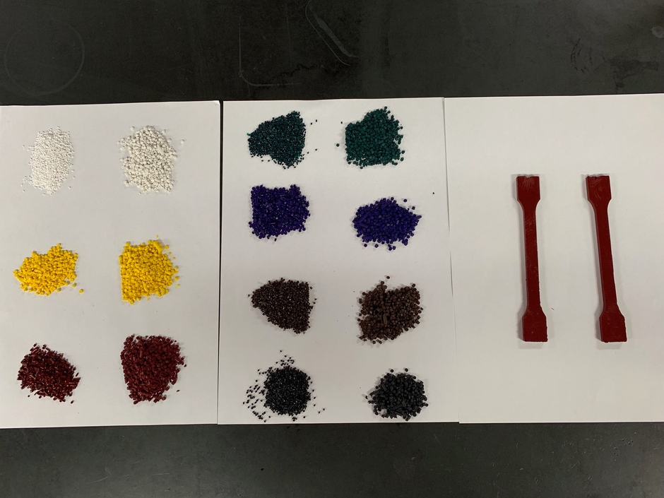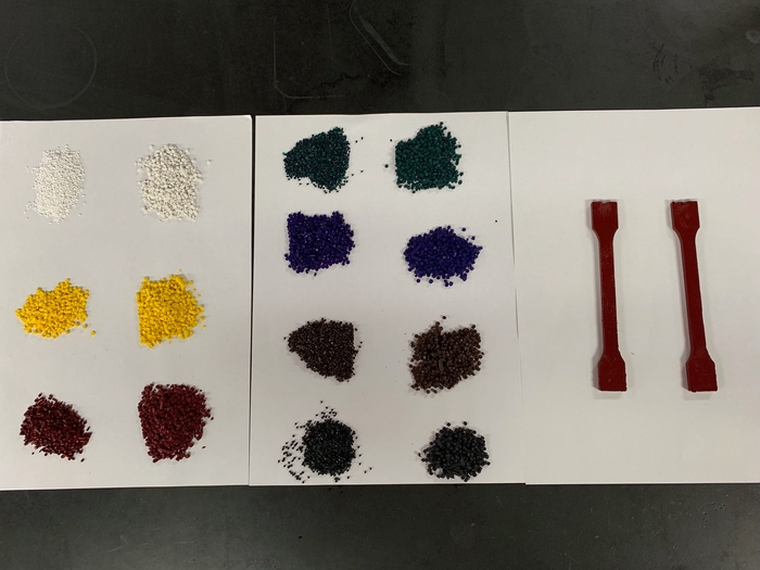 この度、既に開発しているセルロースナノファイバーを生分解性プラスチックに複合化させる技術と、GSアライアンスの母体である冨士色素の長年の色材、顔料分散の技術を融合させて、セルロースナノファイバーを複合化させた生分解性プラスチックカラーマスターバッチを開発しました。生分解性プラスチックに色材を複合化させただけのものより、セルロースナノファイバーを複合することによる引張強度などの機械的強度を向上させることにも成功しています。現在、セルロースナノファイバー複合ポリ乳酸に白、黒、茶、赤、青、緑、黄色の着色を施したマスターバッチができています。今後はポリブチレンサクシネート(PBS)などの他の生分解性プラスチックとの組み合わせ、また顧客の要望に応じて他色のマスターバッチも作成していきます。