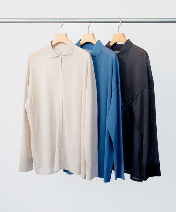 カフスボタンを無くす事でシャツ特有の堅い印象を一変。何度も修正を重ね仕上がったこだわりの襟元はレイヤードもしやすい絶妙なデザインで、同素材のタートルネックプルオーバーとのレイヤードも楽しめる一枚に。