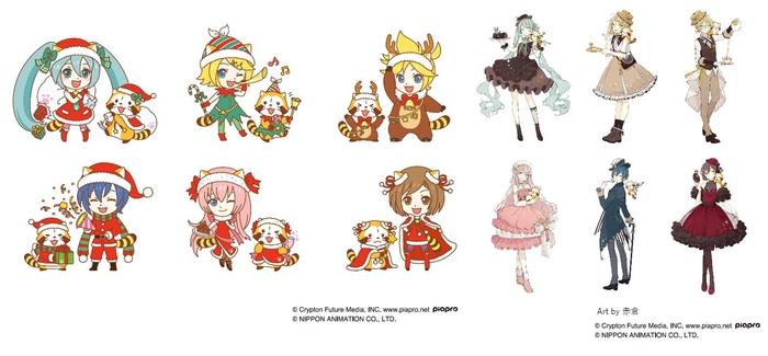 「ラスカル」が40周年を迎えたことを記念して2017年に実現したコラボレーションの好評を受け、同コラボレーションは今年で4年目を迎えます。今年は「クリスマスパーティー」をテーマに、 「初音ミク」をはじめ、「鏡音(かがみね)リン・レン」 「巡音(めぐりね)ルカ」 「KAITO(かいと)」 「MEIKO(めいこ)」と「ラスカル」がサンタクロースやトナカイのコスチュームを身に着け、テーマである「クリスマスパーティー」を楽しむアートを作成。また「クリスマススイーツ」をテーマに、ピアプロキャラクターズと「ラスカル」のコラボレーションイラストをイラストレーターの「赤倉」氏に描き下ろしていただきました。チョコレートケーキをイメージしたドレスを身にまとった「初音ミク」とラスカルなど、それぞれがスイーツをイメージした衣装を身に着けた甘いテイストのイラストです。