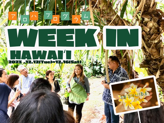 ハワイ州観光局 日本支局(所在地:東京都千代田区 日本支局長:ミツエ・ヴァーレイ)は、3年振りに、「アロハプログラムWeek in ハワイ2023」の開催を決定いたしました。2023年12月12日(火)~16日(土)の期間で、オアフ島で開催いたします。より多くの人に深くハワイを知ってもらいたいという想いからツアーの開催を決定いたしました。現地集合現地解散で、文化や歴史、自然を体験できるハワイスペシャリスト限定の特別ツアーです。ハワイに行ったことがない方も、何度も訪れている方も、ぜひこの機会にスペシャルな5日間をお楽しみください。