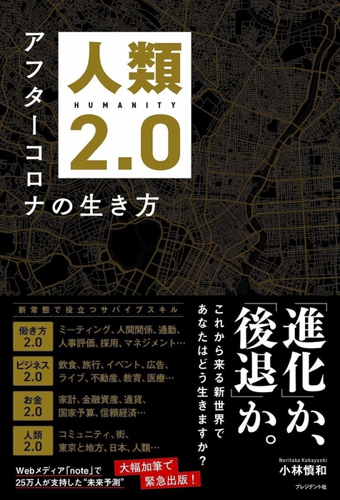 メディアプラットフォームnoteで株式会社bajji CEOの小林慎和さんが投稿した、アフターコロナの未来予想「アフターコロナ世界はどう変わるのか、9つの視点」が書籍化。プレジデント社から8月6日に『人類2.0 アフターコロナの生き方』として発売されます。