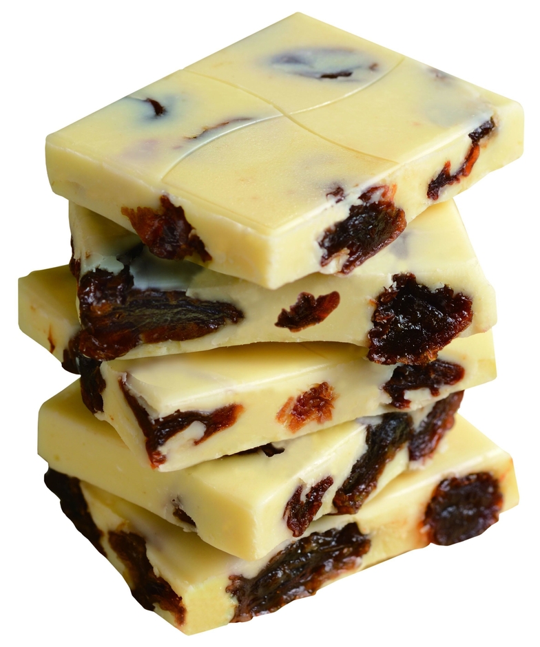 「レーズンラッシュホワイト」は、芳醇な香りが広がるラムレーズンをクリーミーなホワイトチョコレートの中にふんだんにちりばめました。濃厚なミルク風味とマイヤーズラムの芳醇な香りで深いコクが広がる大人の味わいがお楽しみいただけます。