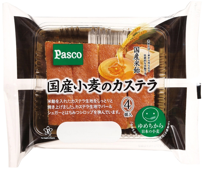 Pasco(敷島製パン株式会社)は、「ゆめちから」を使用したシリーズから「国産小麦のカステラ4個入」を2016年11月1日より、関東、中部、近畿、中国、四国地区にて発売します。