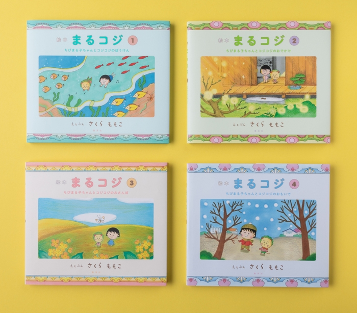 「まる子とコジコジ」は、1992年に『ちびまる子ちゃん』『コジコジ』の著者であるさくらももこが、まんがを読む前のちいさな子どもたちに向けて初挑戦した絵物語の連載シリーズのキャラクターです。2020年には、過去に刊行されていたものを新装、判型を変え、集英社より『絵本 まるコジ』として全4巻で発売。さくらももこが美しい色彩でえがいた、心あたたまるおはなしが収録されています。