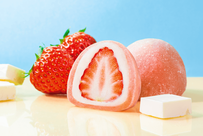 甘酸っぱいブランド苺「紅ほっぺ」とクリームチーズ・北海道産練乳を使用したまろやか「チーズあん」が相性抜群!春の色合い『紅ほっぺ苺のチーズ大福』3月限定販売