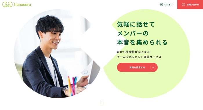 「hanaseru」は管理職の能力や経験値に頼るマネジメントではなく、データを活用することで潜在的な問題を発見して解決するチームマネジメント変革サービスです。