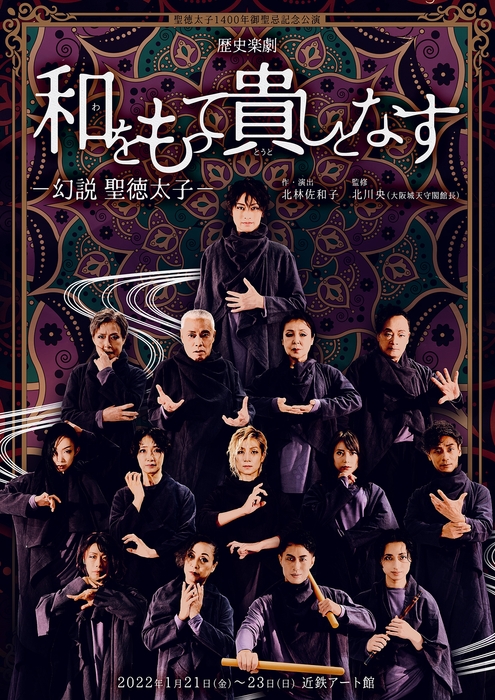株式会社バイタルアートボックス主催 歴史楽劇「和をもって貴しとなす-幻説 聖徳太子-」が2022年1月21日(金)~1月23日(日)に近鉄アート館(大阪府大阪市)にて上演されます。チケットはカンフェティ(運営:ロングランプランニング株式会社、東京都新宿区、代表取締役:榑松 ⼤剛)にて12月10日(金)より発売開始予定です。