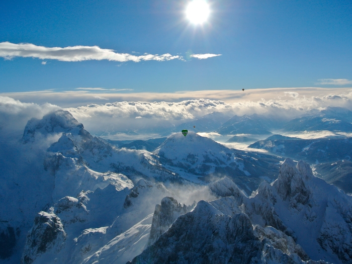 そして、上空から見る景色は特別。僕は雲海を見るのが好きですね。晴天の中、広々と海のようにひろがって見える幻想的な景色は絶景です。バスケットから身を乗り出せる状態で、そんな上空まで行けちゃうんです。日本では高度1000〜1200mと定められていますが、世界選手権では高度3000mくらい上空を飛びます。僕は過去最高5000mくらいまで経験しました。その時は、スイスから飛び立って、アルプス山脈を超えて、イタリアまでいくというフライトだったのですが、終始言葉では言い表せないほどの絶景でした。世界中どこも綺麗でしたが、一番興奮したのはドバイで開催された空のオリンピック「World Air Games(ワールドエアーゲーム)」に出場した時。あの超高層ビルの連なる幻惑的な都市部を低空で飛んで、パーム・アイランドがある美しいペルシア湾に出て、広大な砂漠地帯に降りていくというフライト。近未来とアラビアンな世界が入り混じった非現実的な景色。それは、ドバイでしか味わえない感動的なものでした。