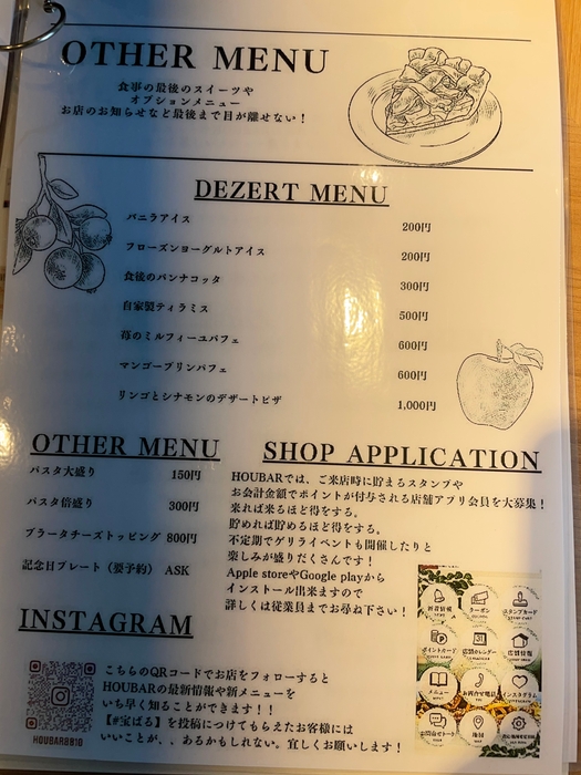 店舗名 Pasta&Pizza HOUBAR(宝ばる)