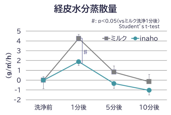 inahoは洗浄直後の蒸散量の上昇を抑制。