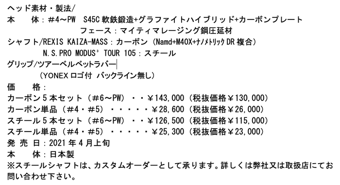 ヨネックス株式会社(代表取締役社長:林田 草樹)は、国内自社工場製軟鉄鍛造アイアンシリーズより、弊社史上最高の飛距離とトップアスリートも納得の好打感を実現した「EZONE CB702フォージドアイアン」を2021年4月上旬より発売いたします。