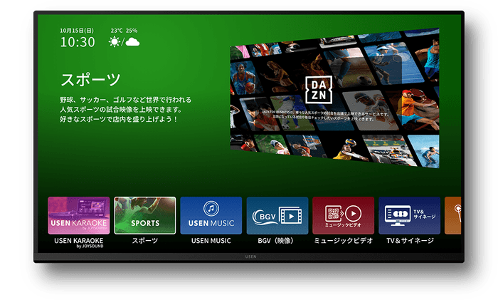 「飲食店のスポーツ上映」でDAZNとUSENが連携 DAZN初!スマートTVに「DAZN FOR BUSINESS」を搭載したセットプランの販売開始