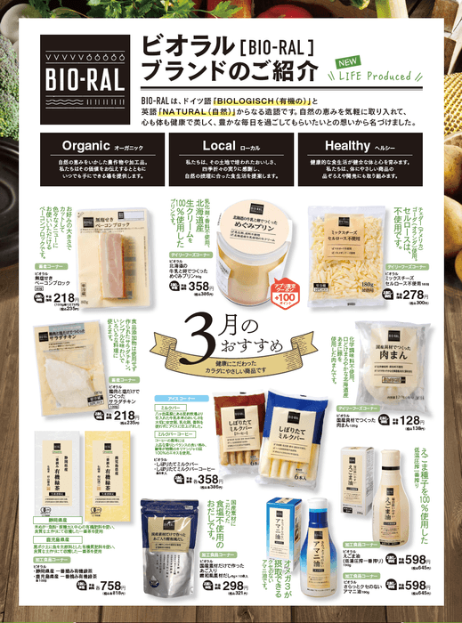 “BIO-RAL”とは、体に優しい素材や製法、健康や自然志向にあわせたプライベートブランド。