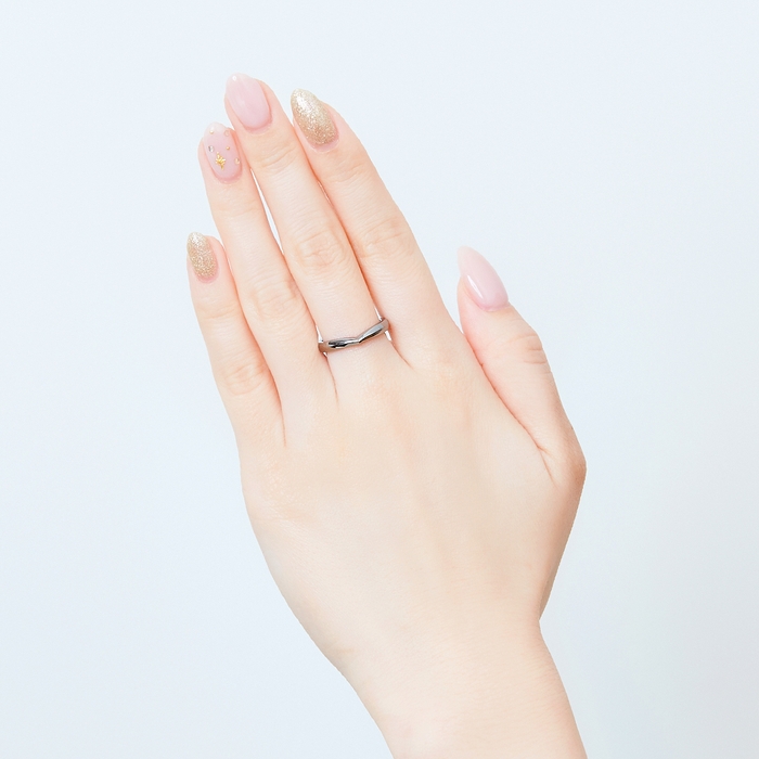 コスチュームの裾の形を取り込んだウェーブタイプのリング。