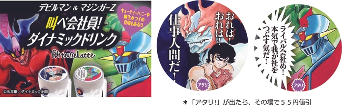 株式会社BANDAI SPIRITS フードエンターテインメント開発部は、当社が手掛けるキャラクタープリントドリンクが楽しめるシステム「フォーチューンラテ」と、「デビルマン」「マジンガーZ」などを手掛ける永井豪作品とのコラボレーションメニューの企画を、2020年2月20日(木)より養老乃瀧株式会社が運営する「だんまや水産」(池袋・仙台)・「一軒め酒場」(大阪)の3店舗を皮切りに全国展開に向けてスタートします。