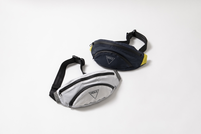 スマートなフォルムのウエストポーチ。ナイロンのカラーブロッキングやフロントのロゴを配したラウンドポケットがコーディネートに効くデザインで、ユニセックスでおすすめです。