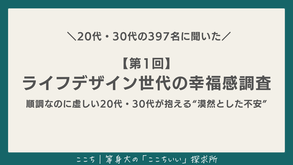 \20代・30代の397名に聞いた/ 【第1回】ライフデザイン世代の幸福感調査 順調なのに虚しい20代・30代が抱える“漠然とした不安”