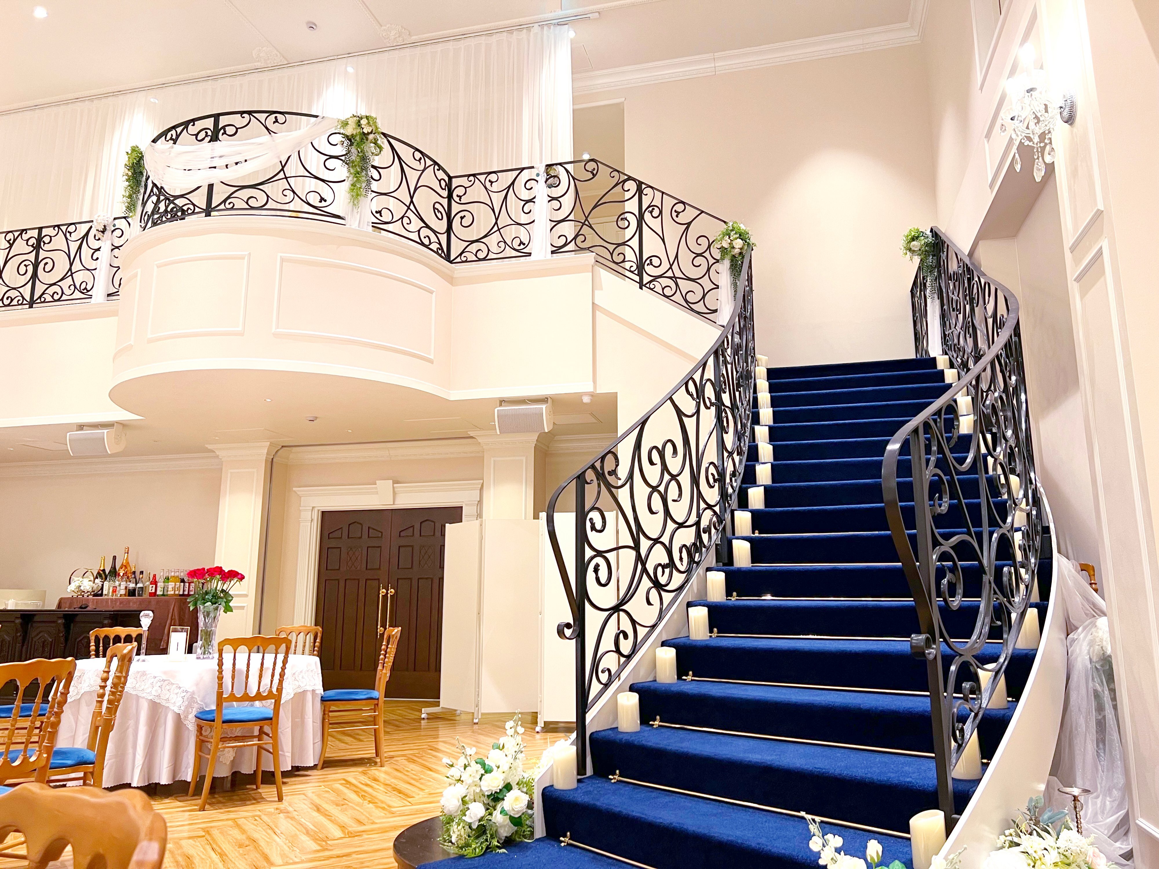 巨大なスクリーンと重厚な音響設備で上映されるヒストリームービーの上映や大階段を使った集合写真など、式場ならではの演出で一体感を醸成します。