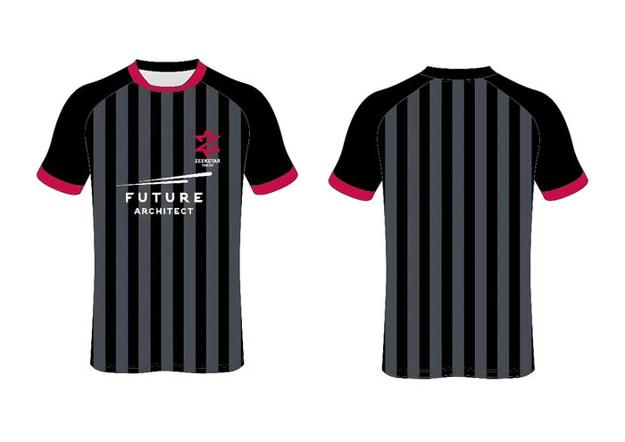 1stユニフォームであるブラックをベースにハンドボールチームの人数である7人を意味する7本のストライプを配し、ネックと袖回りにチームカラーのジークスターピンクをアクセントで入れました。