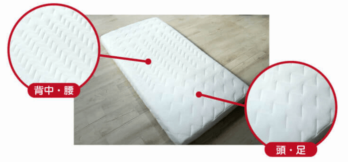 生地表面にはウェーブ加工を施し、さらなる体圧分散性を実現。背中・腰部分はウェーブの数を多くすることで、自然な寝返りを打ちやすくしました。