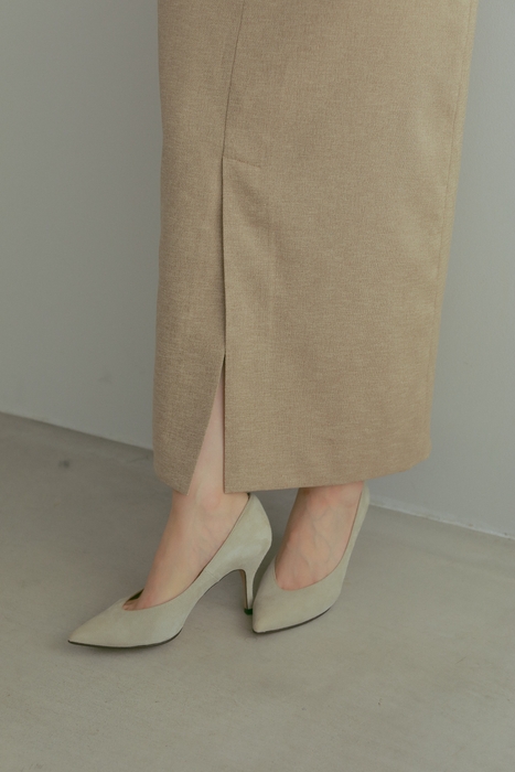 <スタンドカラーVネックジレ × 2WAYスリットロングスカート>