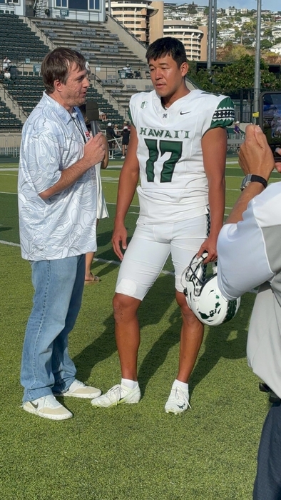 ハワイ大学レインボー・ウォリアーズに所属するキッカー・松澤寛政(まつざわ かんせい)選手は、2025年8月の開幕戦において