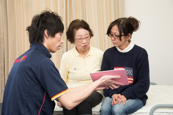 介護の専門知識のみならず、理学療法士の資格を持つケアマネジャーも配置することで、身体状況を把握し、退院後のリハビリや在宅生活での不安な気持ちに寄り添い、その方に最適なケアプランを作成します。
