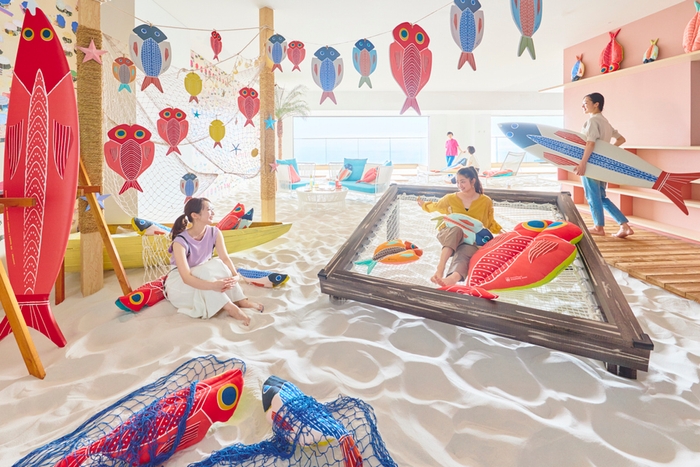 ホテル最上階の「ソラのビーチ Books&Cafe」をイベント限定で、干物をモチーフにデザインしたグッツで設えます。干物になりきるフォトスポットでの写真撮影や開放的なテラスで干物の食べ比べを楽しめます。