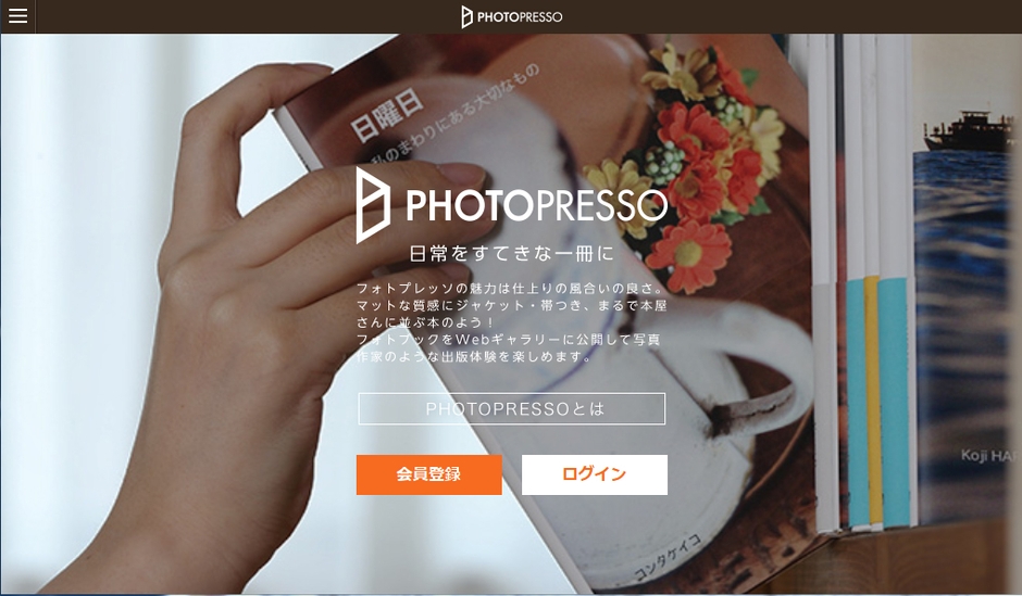 “PHOTOPRESSO”はオンライン型のフォトブックサービスで、ウェブサイト上で自分の写真を簡単に編集・加工してオリジナルのフォトブックを作成できます。出来上った作品を電子書籍のようにウェブサイト内のギャラリーで公開したり、仲間と共有したりすることができ、「作る、見せる、見る」楽しさを体験できます。また、ジャケットや帯が付いた「本」のような装丁のフォトブックとして、1冊からB6判サイズで印刷注文(有料)することができます。