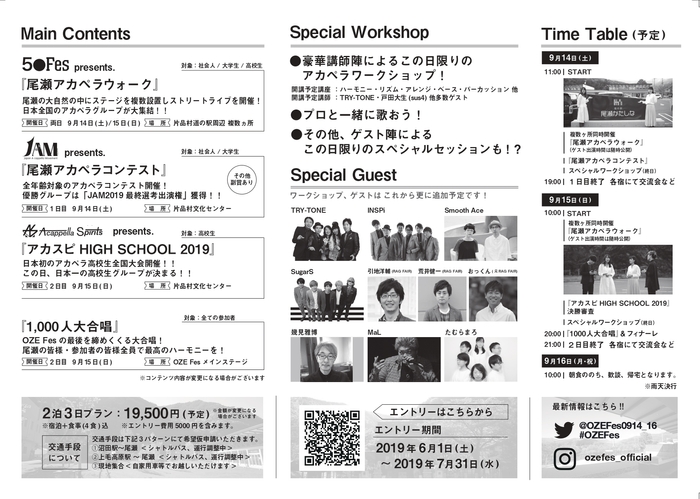 OZEかたしな アカペラファンタジーFES実行委員会(事務局:片品村観光協会、Presents:A cappella Spirits/50Fes/JAM)は、全国のアカペラーが大集結する統合型フェス『OZEかたしな アカペラファンタジーFES』を9月14日(土)・15日(日)に群馬県・尾瀬片品村で開催いたします。