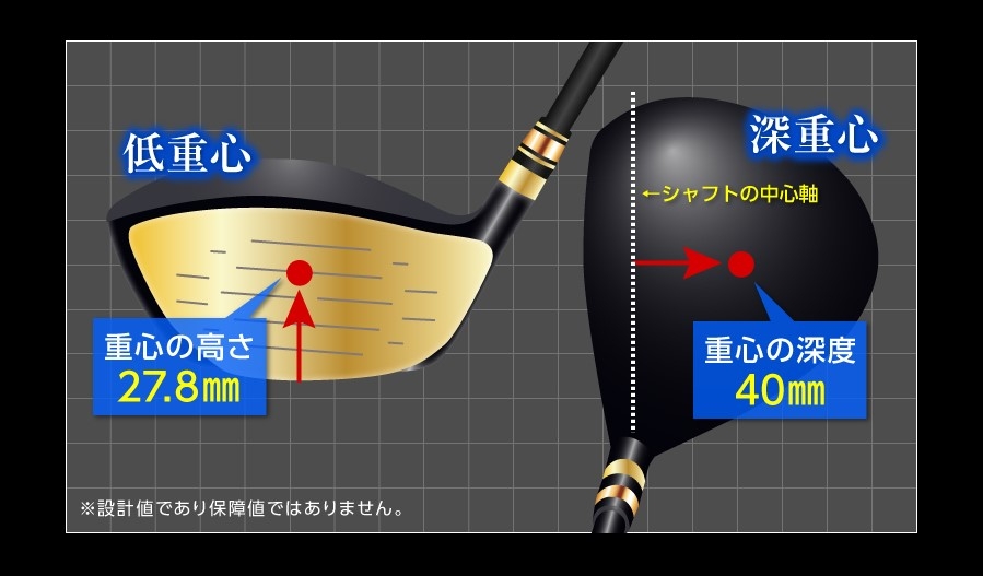 低重心+深重心により打ち出し角が向上!そのため、バックスピンの低減を実現させました。