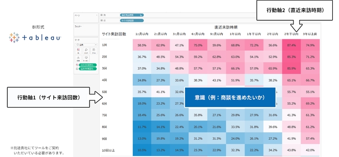 納品形式は、通常のExcelのクロス集計表だけでなく、直観的に分析を行いたい方向けに、BIツールに取り込み可能なデータ形式での納品も可能となっております。